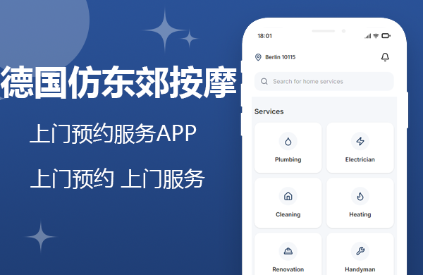 德国仿东郊按摩上门预约服务 APP 是一款基于海外应用开发、海外 APP 开发的德国本地海外家政应用,对标国内...
