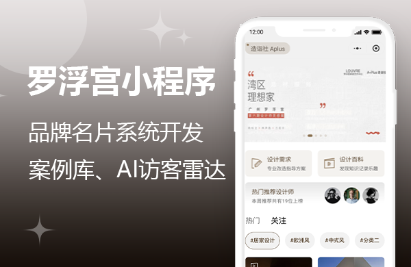 罗浮宫小程序开发集成了案例库、笔记分享、动态关注、积分商城、设计师等级、名片系统及AI雷达等功能,为设计师提供一站式学习...